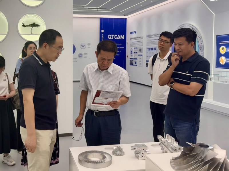 調研過程中,趙建軍董事長首先對李北光副總經理一行的蒞臨表示熱烈歡迎,隨后系統匯報了千機智能的發展歷程、戰略布局及現階段經營成果。重點聚焦公司自主研發的核心產品 QJCAM,詳細闡述其在推動制造企業智能化改造、加速數智化轉型過程中的實踐路徑與突出成果,同時結合具體案例,介紹了QJCAM在智能制造領域的多元應用場景與實際價值,充分展現出千機智能以技術創新驅動智能制造的扎實實力。