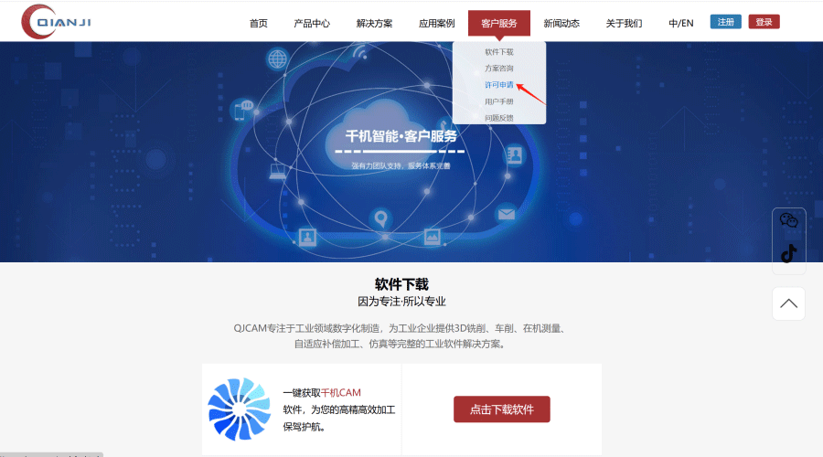 您只需要簡單注冊成為會員,即可享有軟件免費下載試用權益。登陸QJCAM官網網址:www.qjcam.com,右上角菜單欄點擊注冊,填寫信息,完成注冊。
